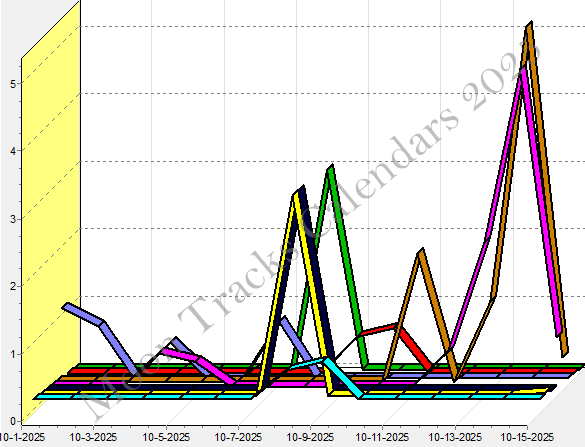 dates are indicated along the bottom of the image above. Intensity level is indicated on the left side of the image above. 0 - 1 = Zero to Low level influence 2 - 3 = Mild to Moderate level influence 4 - 6 = Strong to Intense level influence 7 - 10 = Intense to Extreme level influence 11++ = Beyond Excess